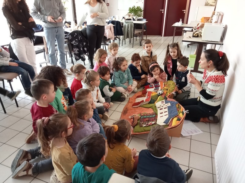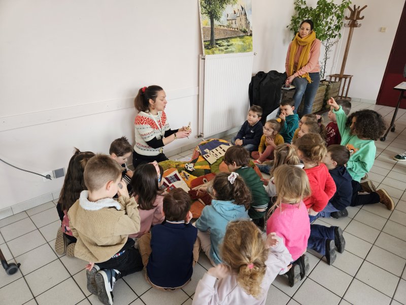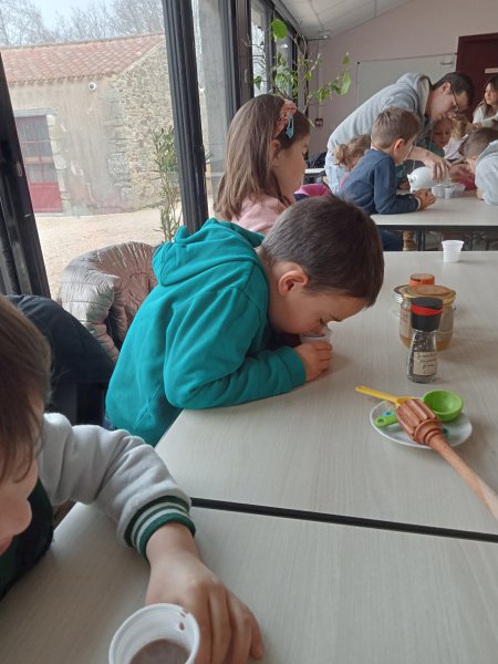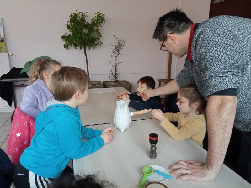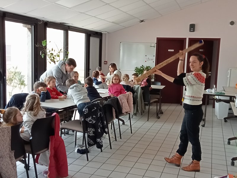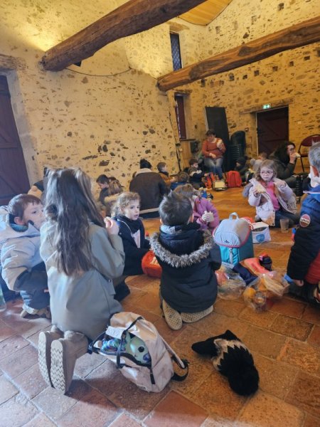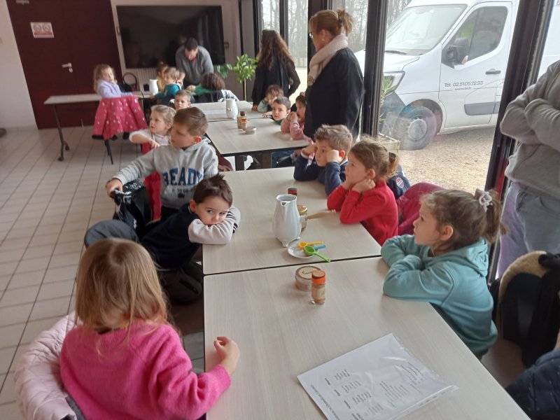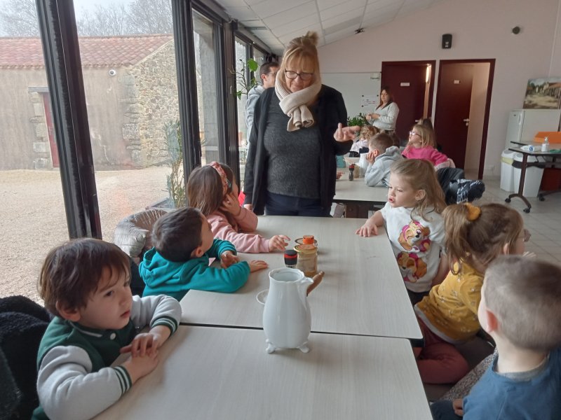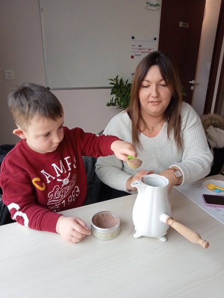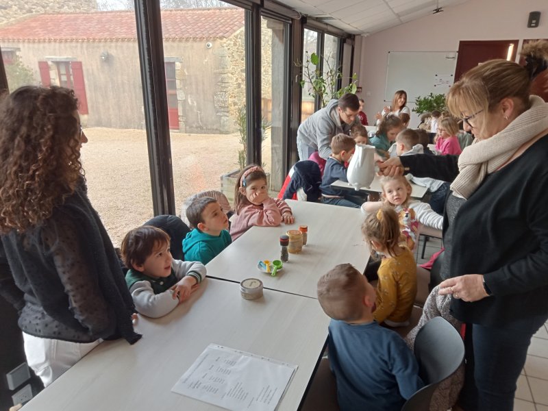 -la recette du chocolat chaud : Angéline l’animatrice nous a raconté une histoire sur le tapis à histoire puis nous avons réalisé la recette du chocolat chaud à l’ancienne. Nous avons mis les ingrédients dans la chocolatière: du lait chaud, du chocolat, du miel, de la cannelle, de la vanille et un peu de poivre. Nous avons mélangé avec le moussoir et nous avons gouté le chocolat. C’était délicieux !