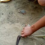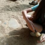 Et puis, nous avons été répartis par binôme pour fouiller, à la manière des archéologues, avec une truelle, une pelle et un pinceau des traces du passé. Nous en avons trouvé une multitude : des fragments de poterie, des os …