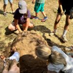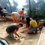 Notre objectif était de construire un four préhistorique. Par petits groupes, nous avons malaxé un mélange de terre, d’eau et de paille pour former le torchis. Ensuite, nous l’avons appliqué à la main sur un tas de pierres, comme le faisaient les hommes préhistoriques. Une expérience salissante mais très amusante, où chacun a mis la main à la pâte — littéralement !